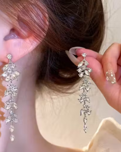 Name: AD Stone Zircon Long Earrings For Women Girls Korean Earring Fashion Earring Light Weight Shiny Party Wear Earrings