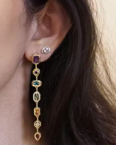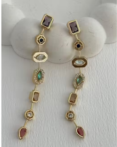 Name: Anti Tarnish 18K Gold Plated Modern Rainbow Drop Earrings Rhinestone & Zircon studded Jewelry for Women | Waterproof & Sweatproof for daily use | Gift for Girls | Crystal Earring| Korean HypoAllergic Gold-Toned Rhinestone Embellishments Fashion Statement Jewellery