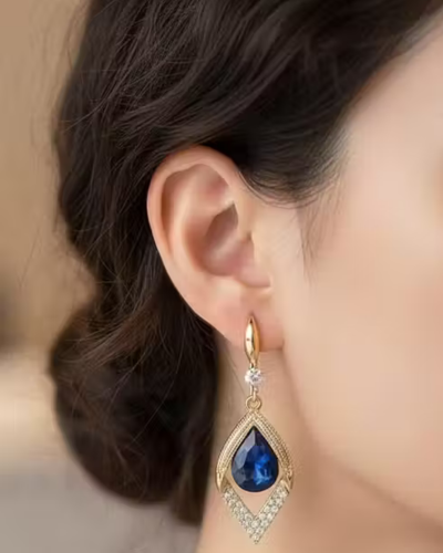 Elegant Gold-Plated Blue Stone Drop Earrings for Women