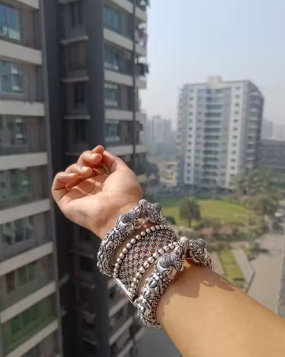 German silver openable bangles set in a stylish 3-piece combo, perfect for adding elegance to any traditional or casual outfit.
