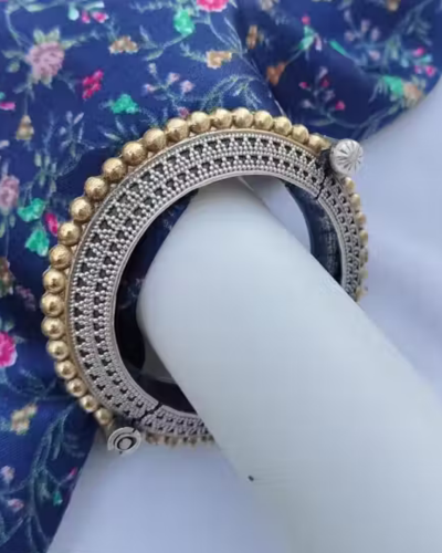 German Silver Replica Dual-Tone Openable Bangle for Girls and Women