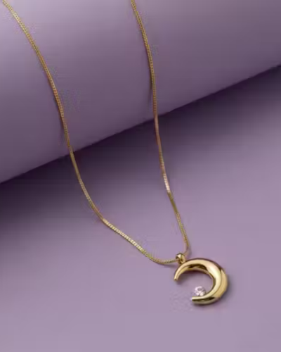 Name: Gold Plated Shimmering Moon Pendant Necklace for Women & Girls