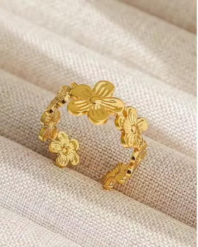 Name: Rings For Women Girls Anti Tarnish Waterproof Daily Wear Adjustable Open Gold Flower Floral Ring Finger Ring