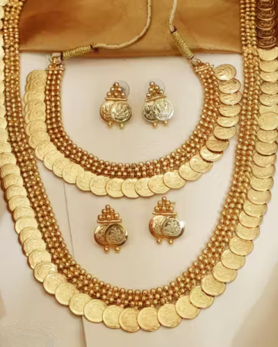 Name:  Traditional Hand-Crafted Micro Gold Plated Kasumalai Coin Necklace Choker And Haram Necklace Set