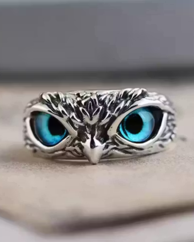 Unisex Silver-Plated Blue Owl Skull Charm VintageAdjustable Finger Ring for Men and Women