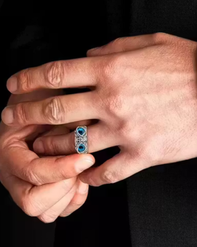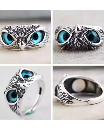 Name: Unisex Silver-Plated Blue Owl Skull Charm VintageAdjustable Finger Ring for Men and Women