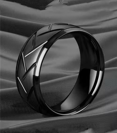 Thrillz Black Michelin Ring | Simple Stainless Steel Ring | Mens Black Ring | Minimalist Black Ring | Mens Black Band | Gift for Him